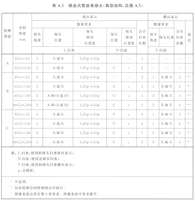 備種類型焊接接頭的檢測(cè)等級(jí),見圖A.1~圖A.7和表A.1~表A.7。