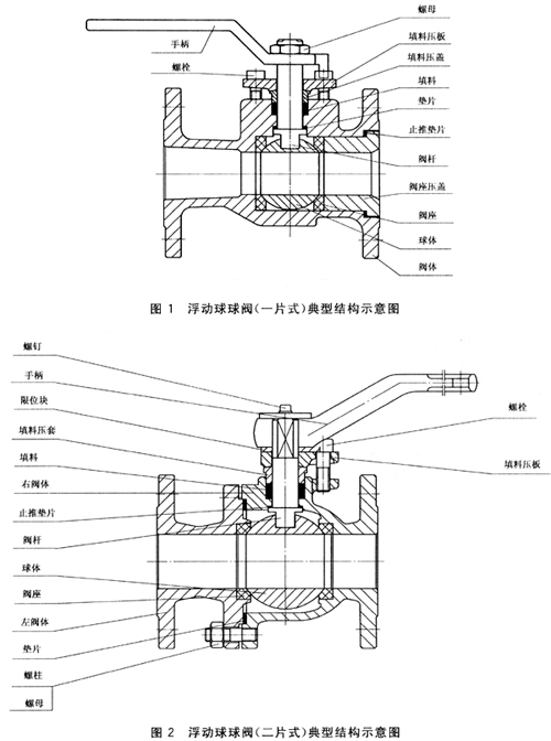 4.1 浮動(dòng)球球閥(一片式)的典型結(jié)構(gòu)如圖1所示。