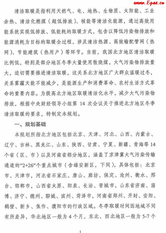 北方地區(qū)冬季清潔取暖規(guī)劃(2017-2021)及《北方地區(qū)冬季清潔供暖“煤改氣”氣源保障總體方案》