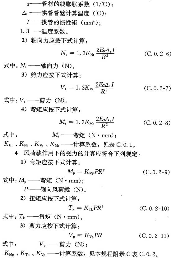 C.0.2 單管拱跨越管道荷載計算應(yīng)符合下列規(guī)定:
