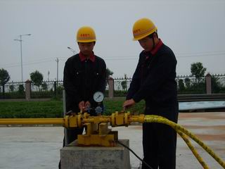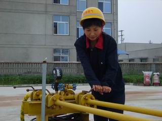 (圖十一)當(dāng)確認槽車內(nèi)的天然氣已卸完時,先關(guān)閉槽車上的閥門,再關(guān)閉卸氣柱的進口閥門。