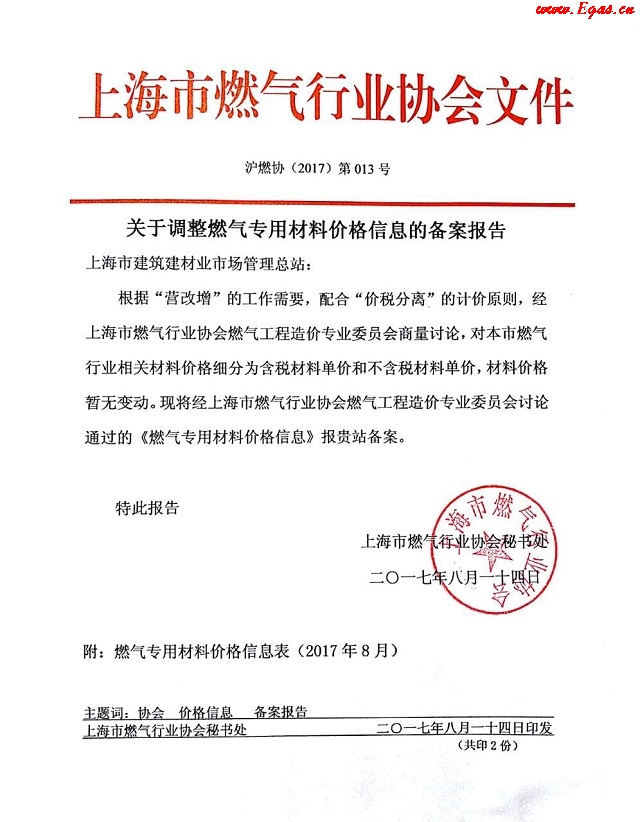 上海2017年8月調(diào)整燃氣專用材料價格信息備案報告 摘 要 上海2017年8月調(diào)整燃氣專用材料價格信息備案報告 在線下載列表 會員下載需要E點:0 燃氣造價信息下載 文章導航 贊 賞 分享 您可以選擇一種方式贊助本站 支付寶轉賬贊助 微信轉賬贊助 注解:本資料由會員及群友提供僅供閱讀交流學習,不得用于商業(yè)用途! 網(wǎng)站VIP會員無限制下載網(wǎng)站資料!贊助網(wǎng)站獲得,點擊贊助!! 燃氣計量差錯的退補氣量核算方法DB 《上海煤氣》2008年第2期精選燃氣 《上海煤氣》2008年第1期精選燃氣 《上海煤氣》2000年第6期論文精選 < 上一篇 聲學探測非金屬管線定位儀——燃氣PE管線定位儀GPPL 下一篇 > 一體化移動式天然氣液化裝置(M-LNG) 文章導航