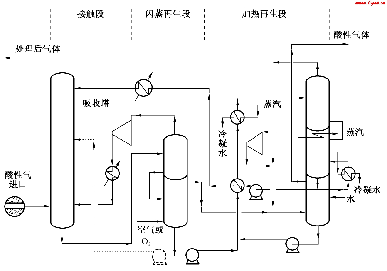 (1)運行的靈活性、適應(yīng)性強,可以根據(jù)不同的酸氣成分和處理要求改裝溶劑。