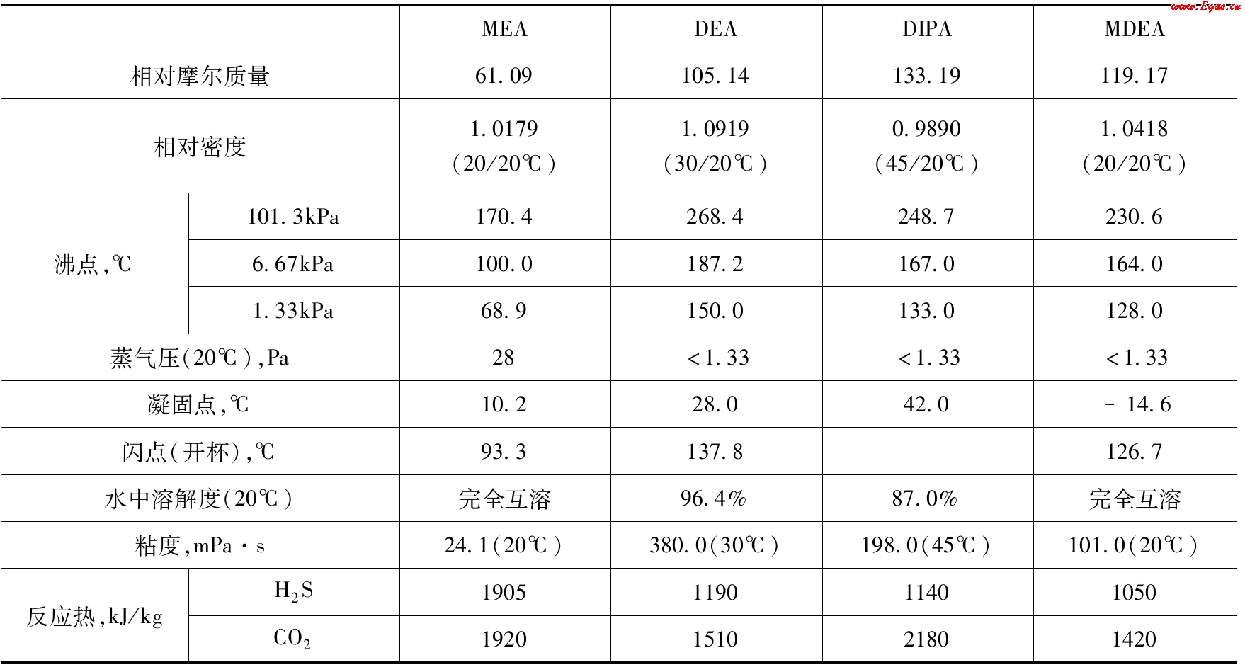 表2-4 幾種醇胺溶劑的物理化學(xué)性質(zhì)