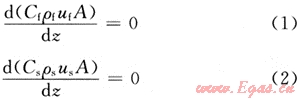 由假設條件可知,泡沫和巖屑在環(huán)空中流動的連續(xù)性方程為: