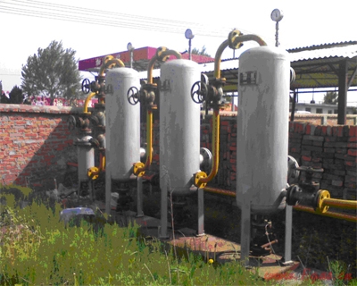 當時市場上的氣源狀況是個別廠家嘗試少量生產(chǎn)車用氣源,但這種車用氣源無非是烯烴含量比民用氣少一些(當時試用的車用氣標準限定丙烯含量不大于5%),但因其凈化工藝與民用氣是相似的所以雜質(zhì)含量相同,所以用起來效果是一樣的,就是都不能讓車正常平穩(wěn)的工作。這種情況不僅存在于丹東地區(qū),東北其他地區(qū)情況也很類似,所以作者計劃用這套裝置把民用氣的雜質(zhì)脫除后給車用。該套設(shè)備依據(jù)雜質(zhì)的類型不同將裝置制成三個梯次的凈化過程,然后再經(jīng)兩級精濾而成。制成后的設(shè)備安裝在在建中的丹東東港市液化氣有限公司的單家井加氣站。