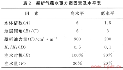 1) 借助實(shí)驗(yàn)設(shè)計(jì)方法綜合考慮底水規(guī)模、儲(chǔ)層傾角、垂向滲透率、凝析油含量等地質(zhì)、油藏因素和注水時(shí)機(jī)、注水量等工程因素,對(duì)凝析氣藏注水開發(fā)進(jìn)行了科學(xué)、高效的分析設(shè)計(jì),確定了可以滿足設(shè)計(jì)需要的少量的、典型的、代表性的水驅(qū)方案。大大提高了開發(fā)方案設(shè)計(jì)的效率,減少了設(shè)計(jì)工作的工作量。