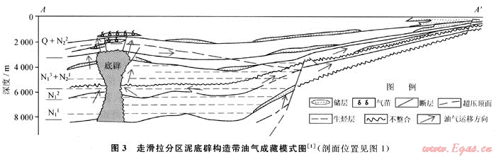 該區(qū)目前油氣勘探主要集中在盆地中部中央泥底辟帶淺層。泥底辟構(gòu)造帶存在上、下2套大的含油氣系統(tǒng)。淺層氣田的形成與泥底辟發(fā)育密切相關(guān),盡管單個(gè)氣田(藏)的天然氣儲(chǔ)量并非都是大型的,但氣田在平面上成群成帶分布,縱向上每個(gè)氣田都存在多個(gè)氣藏疊合,縱向疊合、橫向連片仍可形成較大規(guī)模儲(chǔ)量,采取中、小型氣田聯(lián)合開(kāi)發(fā)可獲較好的經(jīng)濟(jì)效益。