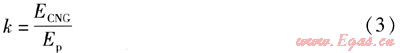 式中k——CNG發(fā)動(dòng)機(jī)與汽油機(jī)單位體積混合氣理論含有能量之比[14]