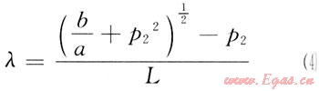 式(2)中a、b為常數(shù),令v=0,則p1與p2關(guān)系為: