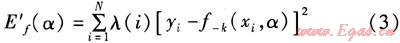 式中E′f(α)——引入調(diào)整權(quán)值后的模型f-k(xi,α)泛化誤差的交叉驗(yàn)證估計(jì)