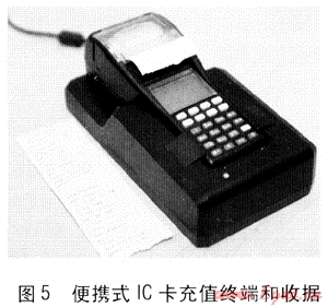 2009年10月起,我公司開始進(jìn)行該項(xiàng)目的開發(fā),經(jīng)過5個(gè)月的開發(fā),正式于2010年2月9日在某住宅區(qū)物業(yè)進(jìn)行試點(diǎn),目前系統(tǒng)運(yùn)行穩(wěn)定,便攜式IC卡充值終端一次充值成功率約90%。便攜式IC卡充值終端和收據(jù)見圖5。