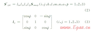 式中Smnop為斜坐標系中的柔度矩陣,S'ijkl為水平坐標系中的柔度矩陣,lij為方向余弦矩陣。