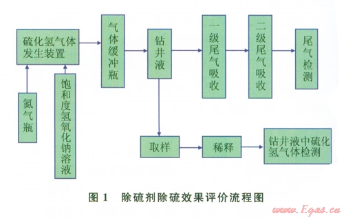 硫化氫屬劇毒氣體,當(dāng)空氣中濃度超過1 000mg/m3時,可引起急性中毒,造成人員傷亡事故[1-3]。鉆井中,硫化氫氣侵首先會對鉆井液產(chǎn)生嚴(yán)重污染,導(dǎo)致鉆井液的流變性能變差,如影響攜帶巖屑、井壁穩(wěn)定、造成起下鉆壓力激動等,增加鉆井成本;其次會對金屬產(chǎn)生氫脆破壞:造成井下管柱的突然斷落、井口裝置失效、地面管匯和儀表的爆裂,引發(fā)井噴失控或著火事故。因此,在鉆井過程中遇到H2S氣侵時,能否及時清除鉆井液中的H2S氣體至關(guān)重要。國內(nèi)外現(xiàn)場鉆井過程中針對硫化氫氣侵采取的主要措施之一就是在鉆井液中加入除硫劑,使硫化氫氣體被氧化或與金屬離子生成沉淀,即將活性硫轉(zhuǎn)換成非活性硫。而現(xiàn)有室內(nèi)評價鉆井液硫化氫吸收劑除硫效果與現(xiàn)場使用效果差異較大。因此研究一種更加接近現(xiàn)場使用效果的室內(nèi)除硫劑除硫效果評價方法具有現(xiàn)實意義。