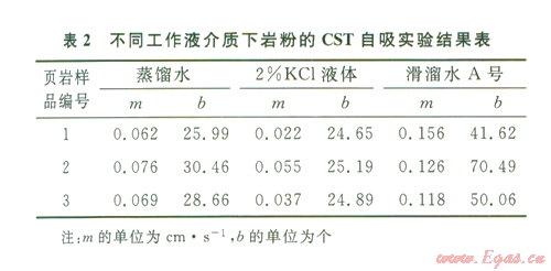 分別采用巖粉CST(毛細管吸入時間)法、巖心CST法、巖心層理面或人工縫的CST法來評價不同工作液介質作用下頁巖的水化分散特征、吸收外來液體的特征以及不同裂縫特征下頁巖吸收外來液體的特征。