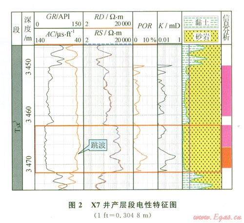 X7井油氣產(chǎn)層段(井深3 465~3