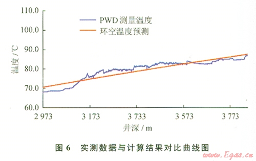 可以看出,依據(jù)該模型計(jì)算的預(yù)測(cè)值與實(shí)際測(cè)量值吻合程度較好。環(huán)空溫度場(chǎng)預(yù)測(cè)結(jié)果的最大誤差為2.87%,能夠滿足控壓鉆井現(xiàn)場(chǎng)施工及數(shù)據(jù)計(jì)算需要。