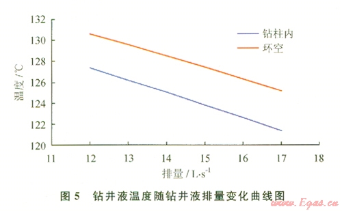 由圖5可知,當(dāng)鉆井液排量增加時(shí),鉆井液溫度隨之降低。