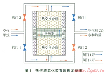 熱逆流氧化裝置原理如圖l所示,裝置啟動時,由電加熱元件將氧化床預(yù)熱,使中央溫度達到點火溫度(
