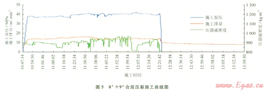 根據(jù)式(3)得出此時總孔眼摩阻為△Ppf2,結(jié)合式(2)、(3)、(7)求出此時施工壓力PE2為: