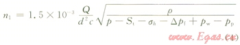 為了確定投球數(shù),假定堵上n0個孔以后,全煤層均被壓開,此時有效孔眼數(shù)n2為: