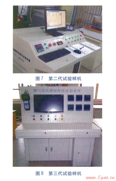 在深入研究燃?xì)饣Q性理淪的基礎(chǔ)上,對當(dāng)前行業(yè)通用的試驗(yàn)氣“華白數(shù)、燃燒勢兩指數(shù)”控制方法進(jìn)行了擴(kuò)展,通過大量試驗(yàn),提出了試驗(yàn)氣“多組分、多指數(shù)”控制方法(如以“華白數(shù)、燃燒勢、黃焰指數(shù)三指數(shù)”為代表的控制方法)。“多組分、多指數(shù)”試驗(yàn)氣配制技術(shù)成果已經(jīng)成功推廣應(yīng)用到行業(yè)知名企業(yè),為行業(yè)發(fā)展起到了引領(lǐng)和示范作用,相關(guān)研究成果已多次在全國行業(yè)會議上交流[18-21]。試驗(yàn)氣配制與燃具適應(yīng)性試驗(yàn)裝置已經(jīng)投放國家燃?xì)庥镁哔|(zhì)量監(jiān)督檢驗(yàn)中心使用,第二、三代試驗(yàn)樣機(jī)分別見圖7、8。