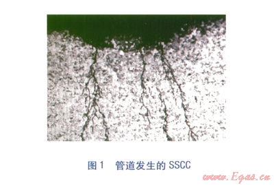 SSCC是指受拉伸應(yīng)力作用的金屬材料在硫化物介質(zhì)中,由于介質(zhì)與應(yīng)力的耦合作用而發(fā)生的脆性斷裂現(xiàn)象。SSCC是在外加應(yīng)力和腐蝕環(huán)境雙重作用下發(fā)生的破壞,其產(chǎn)生有3個(gè)必要條件:敏感的材料、酸性環(huán)境和拉伸應(yīng)力[1]。SSCC與通常所說(shuō)的應(yīng)力腐蝕有所區(qū)別,在通常所說(shuō)的應(yīng)力腐蝕中,環(huán)境所起的作用是以陽(yáng)極溶解為主,而SSCC則是以陰極充氫為主,雖然SSCC機(jī)理尚未被完全揭示,但目前大多數(shù)學(xué)者傾向于把這種開(kāi)裂解釋為氫脆破裂[2]。應(yīng)力腐蝕開(kāi)裂無(wú)明顯的征兆,因此易對(duì)長(zhǎng)輸管道(尤其是天然氣管道)造成災(zāi)難性的后果。圖l為管道發(fā)生的SSCC。