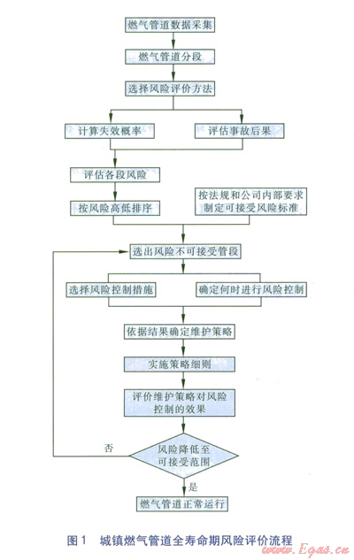 通過對(duì)城鎮(zhèn)燃?xì)夤艿廊珘勖诟鱾€(gè)階段的風(fēng)險(xiǎn)分析,可以得出城鎮(zhèn)燃?xì)夤艿廊珘勖陲L(fēng)險(xiǎn)評(píng)價(jià)的內(nèi)容。以城鎮(zhèn)燃?xì)夤艿廊珘勖陲L(fēng)險(xiǎn)評(píng)價(jià)為中心,通過對(duì)設(shè)計(jì)、施工及驗(yàn)收、運(yùn)行維護(hù)三個(gè)階段風(fēng)險(xiǎn)源辨識(shí),然后對(duì)各個(gè)階段進(jìn)行風(fēng)險(xiǎn)評(píng)價(jià),進(jìn)而確定出各個(gè)階段的高風(fēng)險(xiǎn)管段并制定出相應(yīng)的風(fēng)險(xiǎn)控制措施。