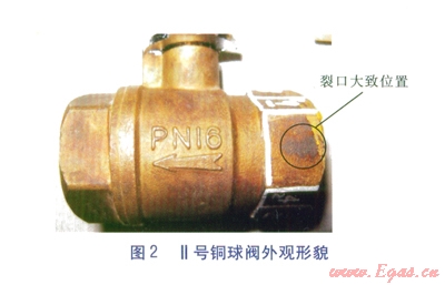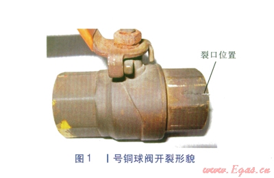 近年來,在西安秦華天然氣有限公司天然氣輸配系統(tǒng)中螺紋銅球閥與燃氣管道螺紋連接處開裂事件屢有發(fā)生,據統(tǒng)計2011年中壓閥門井內的放散銅球閥(DN 25 mm)及調壓箱進口管道處設置的放散銅球閥(DN