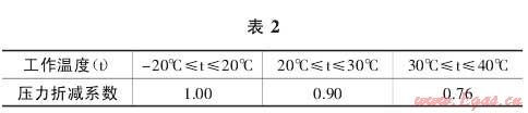 1.2.3 聚乙烯燃?xì)夤艿赖墓ぷ鳒囟瘸^(guò)20℃時(shí),還需要考慮管道燃?xì)馍邔?duì)于其自身承受能力的影響,也就是說(shuō),溫度的勝過(guò)對(duì)造成其允許的最大工作壓力值受到影響而降低,具體的降低系數(shù)如表2。