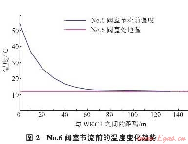 由于距離較遠(yuǎn),輸量較小,管內(nèi)的氣體流速僅為0.70~0.75m/s,導(dǎo)致No.6閥室處管道內(nèi)天然氣節(jié)流前的溫度與地溫基本相同。