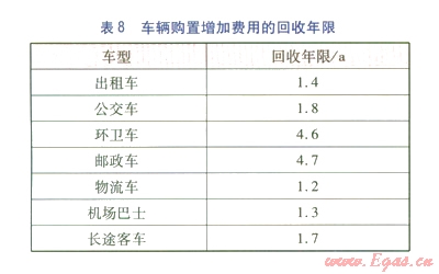 ②根據(jù)油與氣之間的差價(jià),計(jì)算得出車輛購(gòu)置增加費(fèi)用的回收年限均在