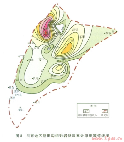 從圖4所示烴源巖有機碳分布圖來看,川東大部分地區(qū)侏羅系烴源巖的總有機碳含量(TOC)一般都超過l%,屬于好的生油巖。特別是位于半深湖相區(qū)的達州一帶TOC超過2%。需要說明的是,由于目前缺乏侏羅系巖心資料,圖4主要根據(jù)野外露頭樣品的分析數(shù)據(jù)而繪制,而露頭樣品的TOC由于受長期風化作用的影響而往往偏低。該地區(qū)侏羅系烴源巖的TOC實際上應該更高。