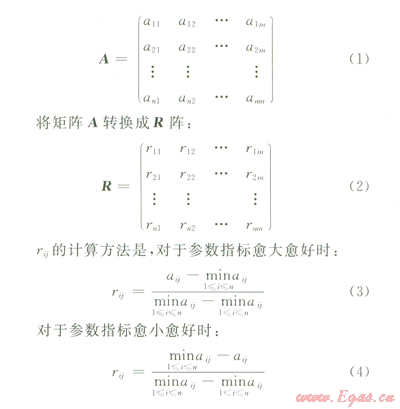 1)選擇m個評價指標、n個評價單元的矩陣。即