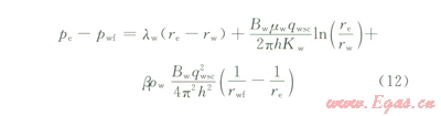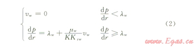 在產(chǎn)水低滲透氣臧的升發(fā)過程中,由于儲層物性差的特性及產(chǎn)水的影響,在對氣井儲量評價時,如果仍用常規(guī)方法必將導(dǎo)致錯誤的結(jié)果。從前人實(shí)驗(yàn)結(jié)果表明:氣體在產(chǎn)水低滲透氣藏巾滲流時,存在啟動壓力梯度[1]。為此,筆者在考慮啟動壓力梯度及產(chǎn)水的基礎(chǔ)上,并結(jié)合氣藏物質(zhì)平衡法,推導(dǎo)了產(chǎn)水低滲透氣井單井控制儲量的計(jì)算方法。