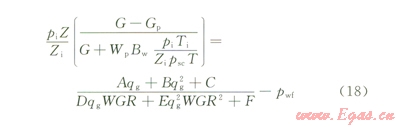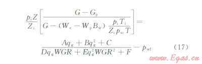對于高含共生水的定容封閉氣藏或邊底水不活躍的氣藏,可以認(rèn)為沒有水驅(qū)的作用,氣井產(chǎn)出的水都來自地層共生水,“即We=0。此時產(chǎn)水低滲透氣井的單井控制儲量方程就可變?yōu)椋?span lang="EN-US">