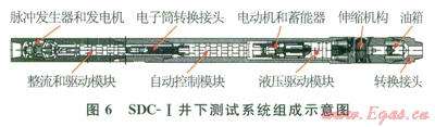 中國石油大慶鉆探工程公司鉆井T程技術研究院于2009年5月研制完成了SDC-I型隨鉆地層壓力測試器[16],并進行了6口井的現(xiàn)場試驗,收到了較好的效果。該測試器分為井下測試系統(tǒng)、地面信息接收及處理系統(tǒng)兩部分。井下測試系統(tǒng)(圖6)負責完成地層壓力的測試并存儲和上傳數(shù)據(jù),地面信息接收及處理系統(tǒng)負責對數(shù)據(jù)進行接收和處理。現(xiàn)場試驗表明,該測試器設計合理,可靠性高,壓力測量精度達到0.1%,溫度測量精度達到±0.5℃,井下供電功率達到l60W。可隨鉆實現(xiàn)數(shù)據(jù)上傳和井下存儲功能,地面可隨鉆獲取井下準確的環(huán)空壓力、溫度、地層壓力和地層流度(地層流度表示流體在該地層中流動的難易程度。是油層有效滲透率與流體黏度的比值)。經過一年半的推廣,SDC-I目前共完成12口井的現(xiàn)場測試工作,井下測試最高壓力47.02MPa,最高溫度109.7℃。這種測試器已初步具備商業(yè)化應用的條件[17]。