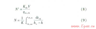 采用Merkel焓差法模擬冷卻塔逐時(shí)進(jìn)出水溫度,使得冷卻塔特征數(shù)N'與冷卻數(shù)N相等或非常接近,此時(shí)的冷卻塔出水溫度即為所求。N'、N的計(jì)算式分別為: