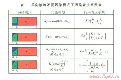 1 不同污染模式下的污染表皮系數(shù)