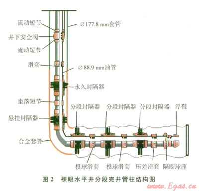 套管完井水平井,采用一趟下入完井管柱,管柱結(jié)構(gòu)見圖l。