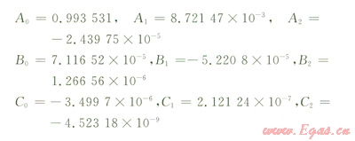 式中Th表示均一溫度,℃;A、B、C分別為鹽度的函數(shù):
