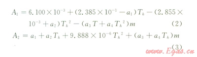 式中Th表示均一溫度,℃;m表示鹽類質(zhì)量摩爾濃度,mol/kg,它與鹽度(叫)的換算公式為:m=1 000ω/[58.5×(100-ω)];al、a2、a3、a4為常數(shù),對于CaCl2-H20體系來說,al=2.848×101,a2=-6.445×10-2:a3=-4.159×10-1、a4=7.438×10-3。