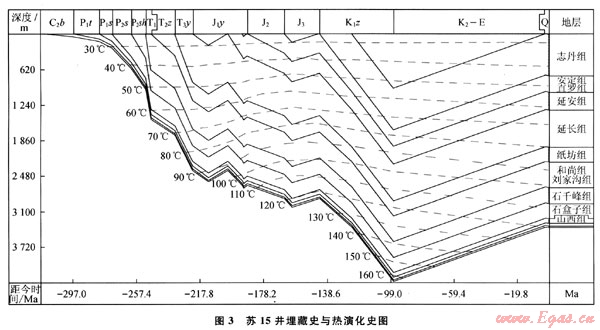 蘇里格地區(qū)在燕山中晚期由于構造熱事件的發(fā)生,古地溫梯度較高,介于3.6~4.0℃/100m,早白堊世末以來,燕山構造熱事件消失,地溫梯度下降為現今的2.8~3.0℃/100m。晚白堊世以來,一方面地溫梯度逐漸降低,另一方面,地層抬升和剝蝕又進一步使地層溫度降低。通過盆地模擬計算,蘇里格氣田盒8段從早白堊世末期到現今,由最高古地層溫度從170℃降低到110~120℃,地層溫度大約平均降低了50℃(圖3)。假設氣藏自早白堊世末至今不存在氣體的散失和注入,根據理想氣體熱力學方程計算,地層壓力降低到原來的86.5%。