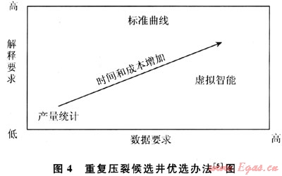 李新景等通過(guò)對(duì)川南、川西南下寒武統(tǒng)筇竹寺組威5、威18等井及下志留統(tǒng)龍馬溪組陽(yáng)63、太15、陽(yáng)深1、陽(yáng)深2等老井的資料復(fù)查,認(rèn)為在這些老井中存出現(xiàn)頁(yè)巖氣顯示。陽(yáng)63井3505~3518m井段黑色碳質(zhì)頁(yè)巖段射孔后,經(jīng)土酸酸化處理,獲得天然氣3500m3/d[20]。對(duì)于像這些在鉆井中存在良好的頁(yè)巖氣顯示,特別是經(jīng)過(guò)初次酸化壓裂改造后在頁(yè)巖層段獲得較好的天然氣產(chǎn)出的老井,在現(xiàn)階段,采用現(xiàn)代的水力壓裂技術(shù),對(duì)非頁(yè)巖層封堵后重新壓裂頁(yè)巖層段,改善儲(chǔ)層的滲透性能,是獲得頁(yè)巖氣產(chǎn)量突破的最佳辦法。重復(fù)壓裂候選井選擇方法有產(chǎn)量統(tǒng)計(jì)法、模式識(shí)別技術(shù)(尤其是神經(jīng)網(wǎng)絡(luò)、虛擬智能和模糊邏輯)以及產(chǎn)量標(biāo)準(zhǔn)曲線法。在頁(yè)巖儲(chǔ)層中,虛擬智能模擬得出的結(jié)論最有效,其次是標(biāo)準(zhǔn)曲線法,單獨(dú)使用生產(chǎn)數(shù)據(jù)的方法效果最差[5]。在選擇候選井時(shí),應(yīng)該綜合3種方法優(yōu)選的結(jié)果選擇最合適的井進(jìn)行壓裂(圖4)。