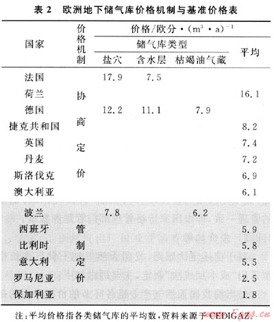 1 國外地下儲氣庫價(jià)格機(jī)制