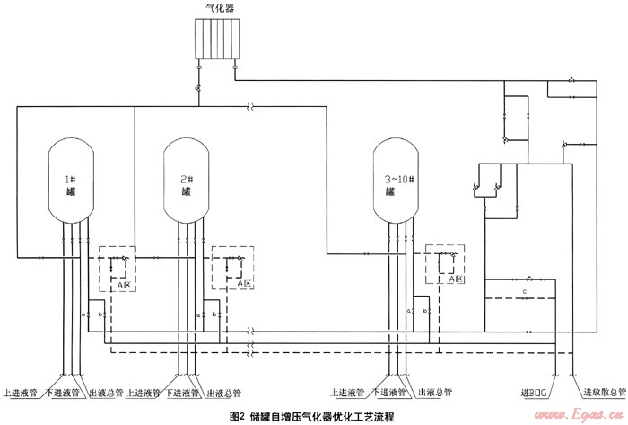 隨著我國天然氣利用步伐的加快,很多城市都在積極地建設(shè)天然氣利用工程。液化天然氣(LNG)也經(jīng)常成為被選方案,LNG廠站的建設(shè)就成為天然氣利用工程中重要的組成部分。大量的前期投入,使企業(yè)前期投入成本非常高,洛陽就是這樣的城市。作為站區(qū)技術(shù)管理人員,有責(zé)任為減低生產(chǎn)成本,做出努力。儲(chǔ)罐自增壓工藝流程的優(yōu)化方案的提出就是這樣的思路。