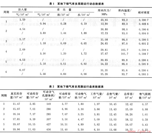 根據(jù)新建的盤庫數(shù)學(xué)模型,采用迭代算法,利用某地下儲氣庫多周期運(yùn)行注采動態(tài)系列數(shù)據(jù),連續(xù)計(jì)算了各周期末的盤庫技術(shù)指標(biāo),見表2。