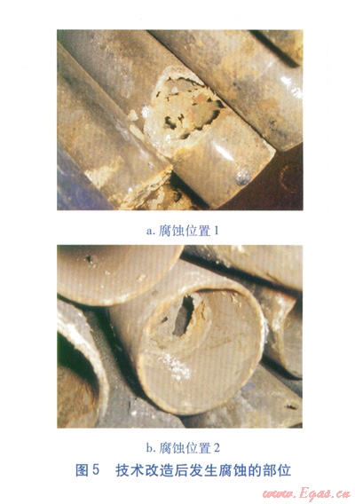 按單純改善換熱管材質考慮,當換熱管采用20號鋼時,一組管箱(整體焊接的固定管箱式結構)的制造安裝費用為2.85×104元。當換熱管采用ND鋼時,一組管箱(整體焊接的固定管箱式結構)的制造安裝費用為6.96×104元。后者的制造安裝費用為前者的2.44倍,但使用壽命并未明顯延長,最長為5~10個月。