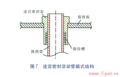 采用端面填料函密封的活動管箱式結構時,一組管箱的制造安裝費用為7.64×104元。采用迷宮密封活動管箱式結構時,一組管箱的制造安裝費用為13.52×104元。前者的使用壽命為l0~l2個月,后者的使用壽命為6年以上。因此,在滿足使用壽命的前提下,采用迷宮密封活動管箱式結構的空氣預熱器的技術經(jīng)濟性可以接受。