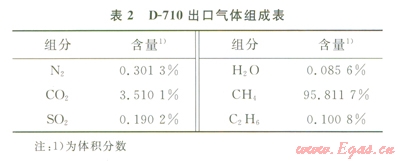 首先利用氣相色譜對閃蒸氣的組成進行了分析,結果如表l所示。從分析結果可以看出,其主要成分是CH4,含量為94.9967%(體積分數(shù)),通過表l的對比可以看出,閃蒸氣的組成和燃料氣的組成十分相近。